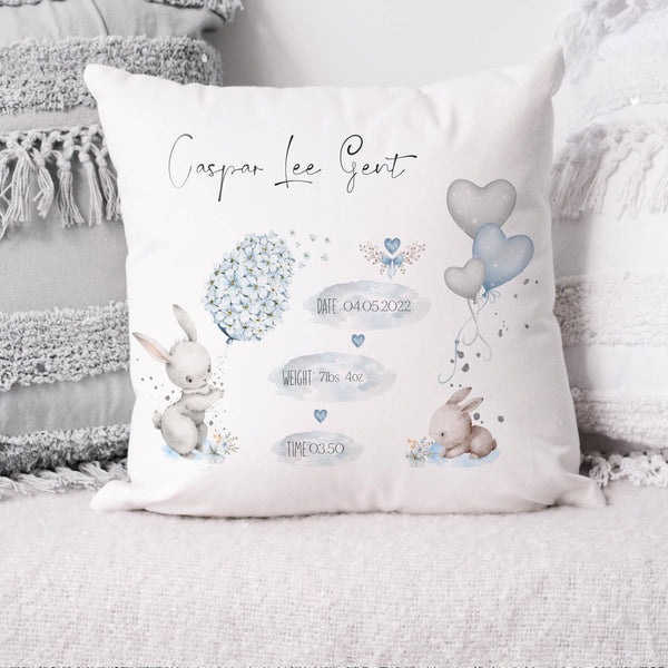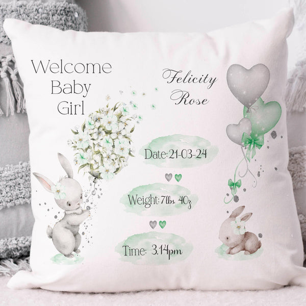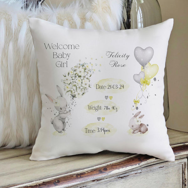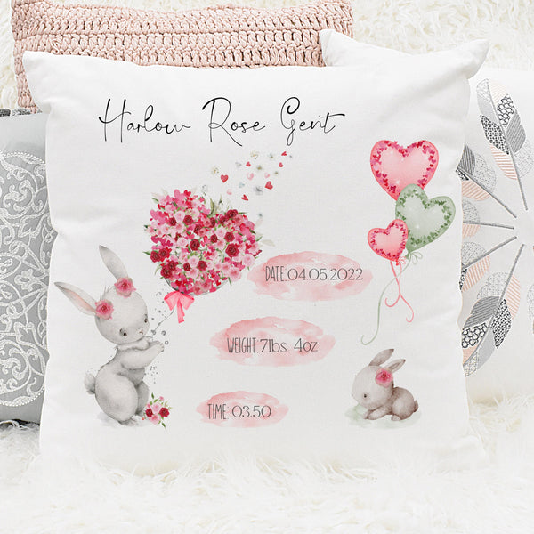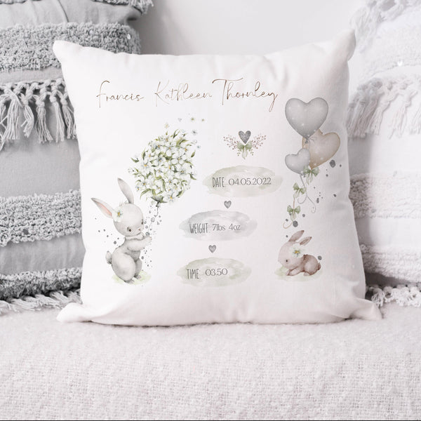Personalised Baby Stats Bunny Cushion: Newborn Nursery Decor