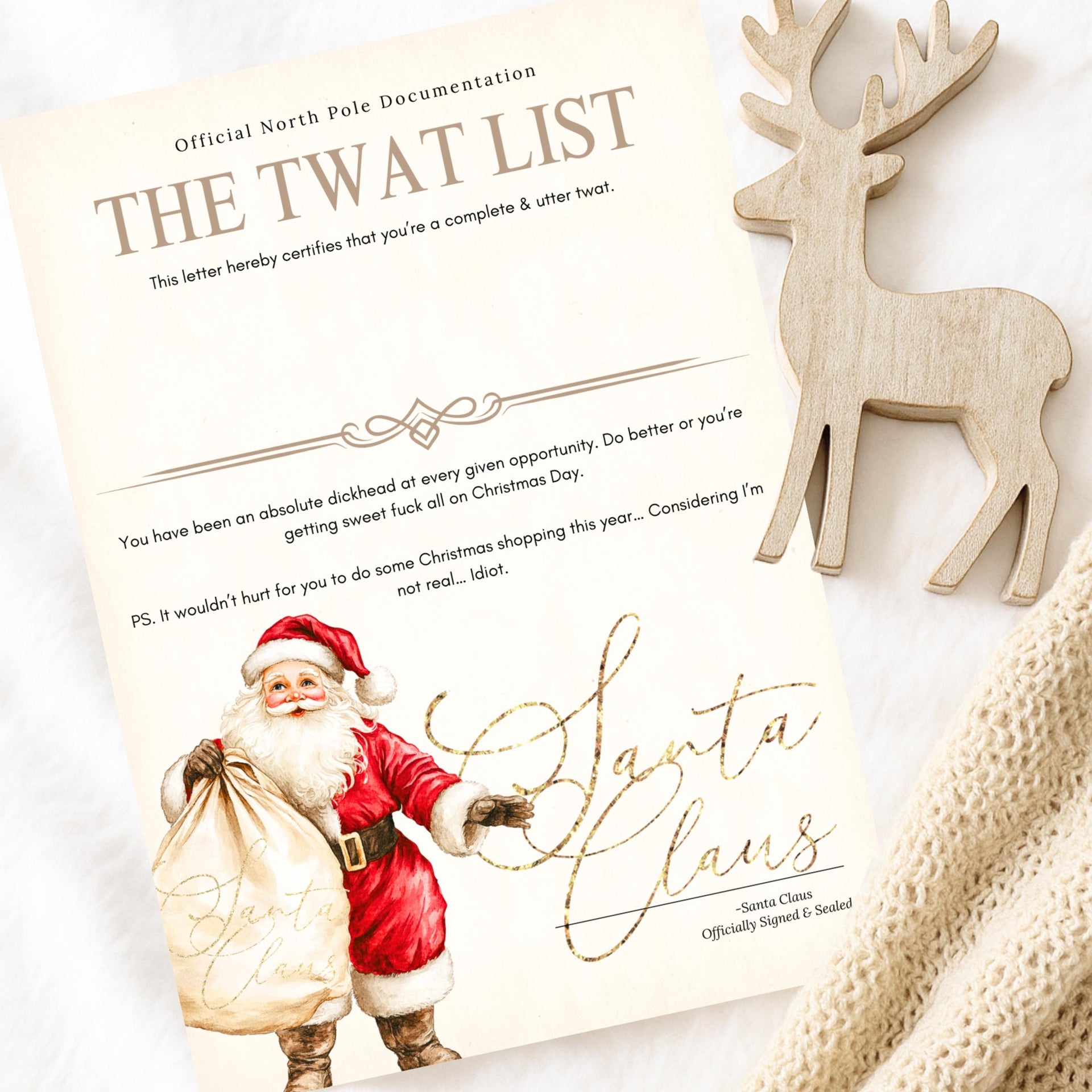 • Naughty List Certificate (for the ones who’ve been extra rude)