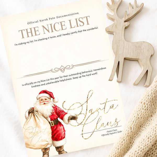 • Nice List Certificate – Straight from the North Pole, confirming they’ve made Santa’s official Nice List.